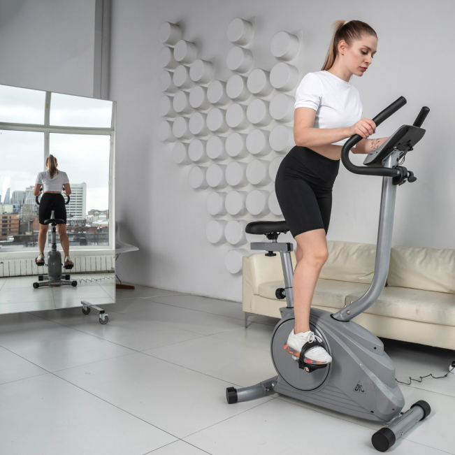 Устойчивый маховик весом 5 килограмма, расположенный под сиденьем, гарантирует плавный ход в процессе занятия.